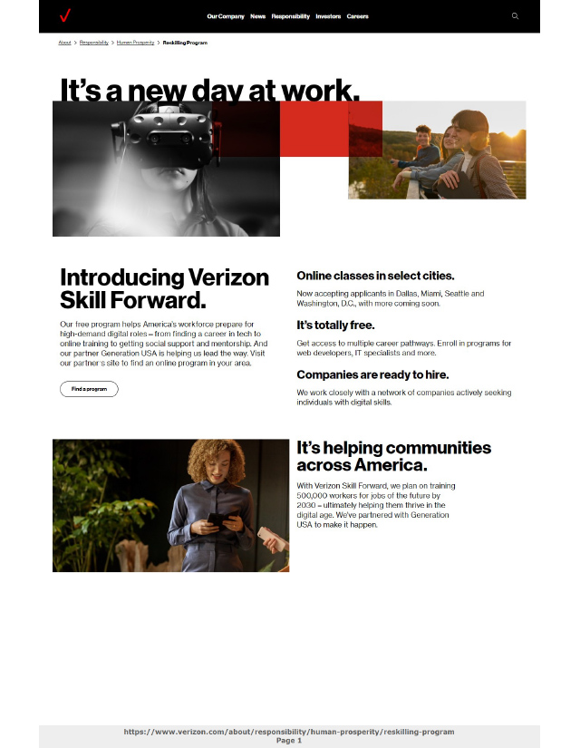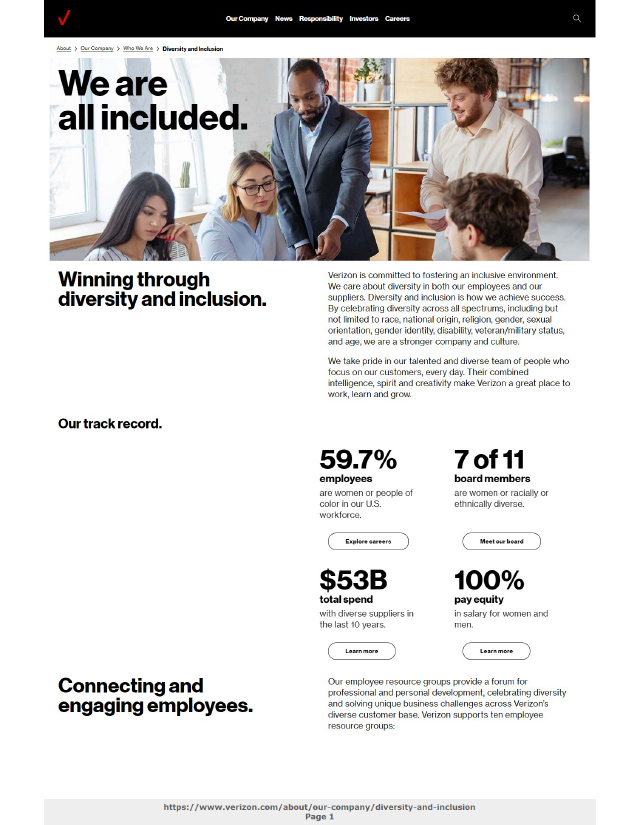 Verizon Click on each thumbnail to view a full readable PDF of the page. Diversity and Inclusion Company History Upskilling and Reskilling Share this: Share on X (Opens in new window) X Share on Facebook (Opens in new window) Facebook Like Loading...